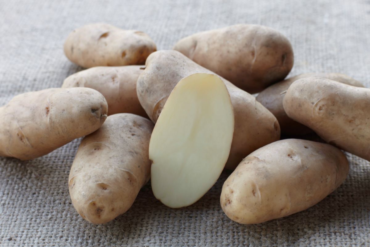 Rund-ovale mittelgroße Knolle mit weißem Knollenfleisch und ansprechendem Ertrag