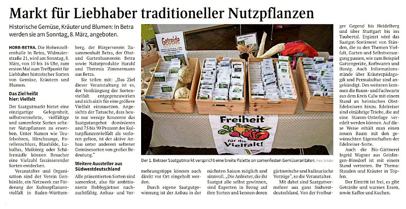 Der Obst- und Gartenbauverein Betra krönt sein 75-jähriges Jubiläumsjahr mit einem Saatgutmarkt.