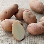 Rund-ovale Knolle mit hellroter Schale und weißem Knollenfleisch