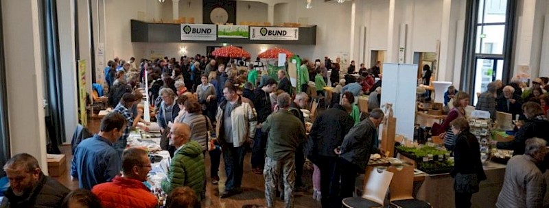 Die Aussteller kommen aus Bayern und Baden-Württemberg und bieten eine große bunte Auswahl an verschiedenen Sämereien (Kräuter-, Duft- und Färbepflanzen, historische Tomaten, vergessene Gemüsesorten, Saatgutraritäten) und Nützliches rund um das Thema Garten an.